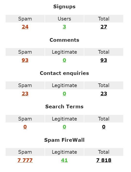 Report from tthe recently added security features in the attempt to stop chat bot floods and bot registrations.